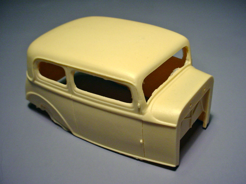 Here's a pic of the body, the way that it arrives. It requires some trimming and sanding to yield a smooth surface for primer. I also used a dremel on the inside to thin it down a little to lighten it even further.
