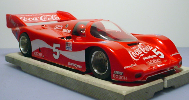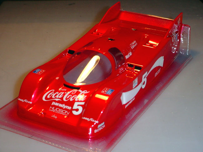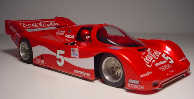 This is my 2nd TSRF 1/24, a Porsche 962, with the Coca-Cola Watkins Glen livery. I realize the the real car was painted an opaque-solid red, but I couldn't resist painting my little one a candy pearl red so it resembles the color of an actual can of Coke.